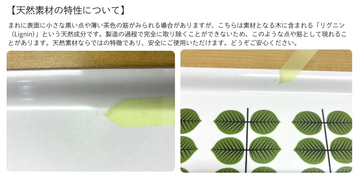 注意事項 | 耐熱素材なので、熱いカップやポットなどを直接のせることができます。オーブン皿や鍋用の鍋敷きとしてはお使いいただけません。 |