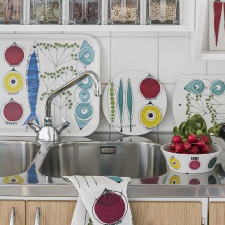 キッチンが華やぐ北欧レトロ柄の鍋敷き。アルメダールスのデザインの中でも、特に人気の柄が揃います。テキスタイルの素材感を残したデザインにこだわり、洗練されたおしゃれの中にどこか優しさが感じられます。またチーズやパン、フルーツをカットしてそのまま出せばおしゃれなおもてなしの北欧キッチンに。おしゃれ北欧柄のキッチン雑貨は、出したままにしておいても、インテリアの一部として華やかです。