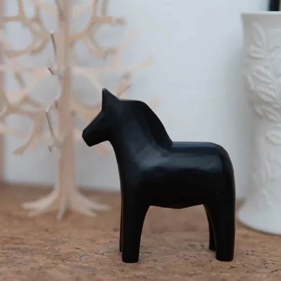 ・こちらのダーラヘストは表面に白、または黒での塗装加工を行っているため、全体の個体差は少なめなタイプです。